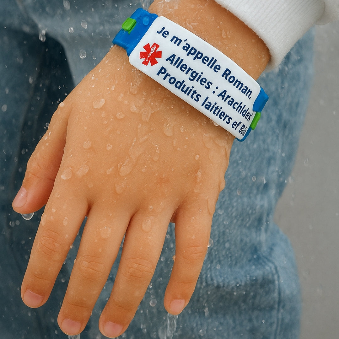 Fabriqué en silicone doux et résistant, il ne gêne pas l’enfant et résiste à l’eau comme aux jeux du quotidien. Idéal pour l’école, le sport ou les sorties.